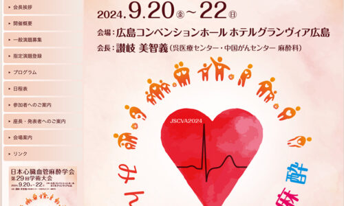 日本心臓血管麻酔学会第29回学術大会は、2024年9月20日(金)〜9月22日(日)に広島コンベンションホール/ホテルグランヴィア広島で開催されます。9月23日…