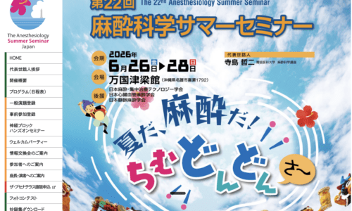第22回麻酔科学サマーセミナーは、2026年6月26日(金)〜6月28日(日)に沖縄県名護市の万国津梁館で開催されます。多くのみなさまの御参加をお待ちしています…